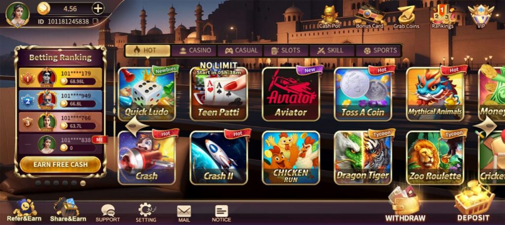 New users often receive the 10 PKR for sign-up. The seasoned players earn the log-in bonus, referral earning, first deposition and cashback on deposition and VIP tiers. These all give you a real chance to earn more and also attract players.